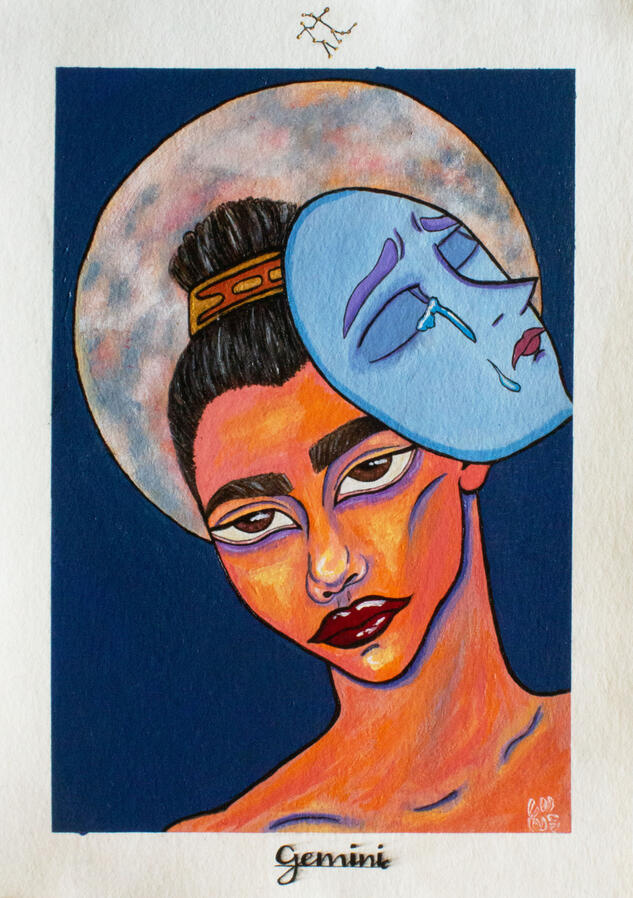 幇間 • Jester • Double layered painting • Gouache, Ink, Liquid Gold, Polychromos & Copper Leaf on hand pressed watercolor paper