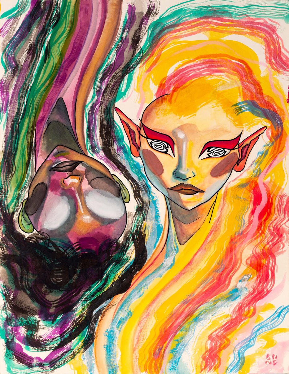 精霊と燈火 • Ink, Gouache, Manga Paper